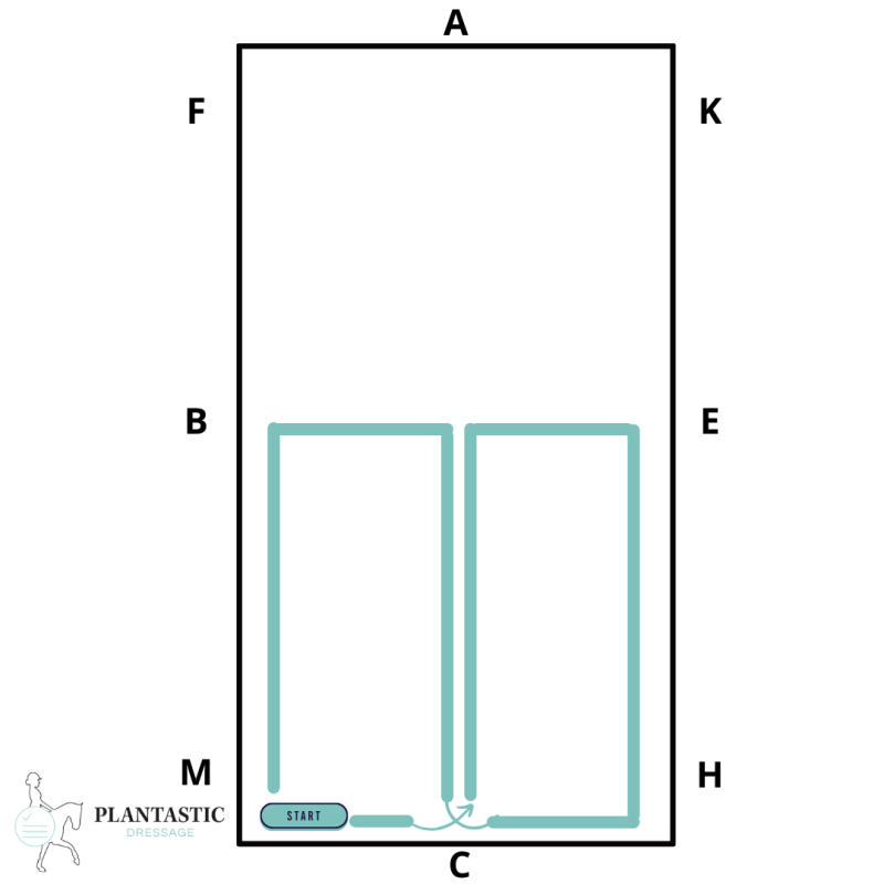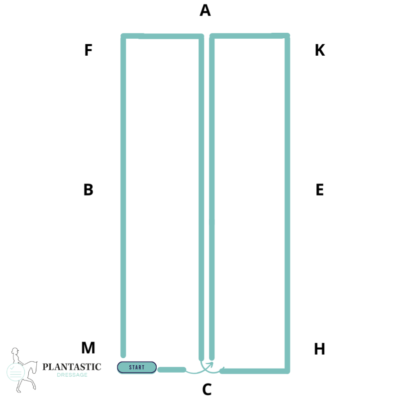 - Wissel links en rechtsaf met elkaar af zodat je straks op beide kanten goed kan binnenkomen en ook een mooie wending bij de C kan maken, daar ben je tenslotte het dichtste bij de jury dus dat moet echt goed gaan!